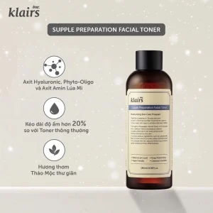 Toner Klairs là dòng nước hoa hồng quốc dân dành cho mọi loại da. Sản phẩm giúp cấp ẩm tức thì cho da. Việc sử dụng toner mỗi ngày giúp cân bằng độ pH hiệu quả. Bên cạnh đó, nó còn làm dịu các vùng da đang bị kích ứng. Vì vậy, làn da của bạn sẽ trở nên mềm mại và sáng mịn hơn.”